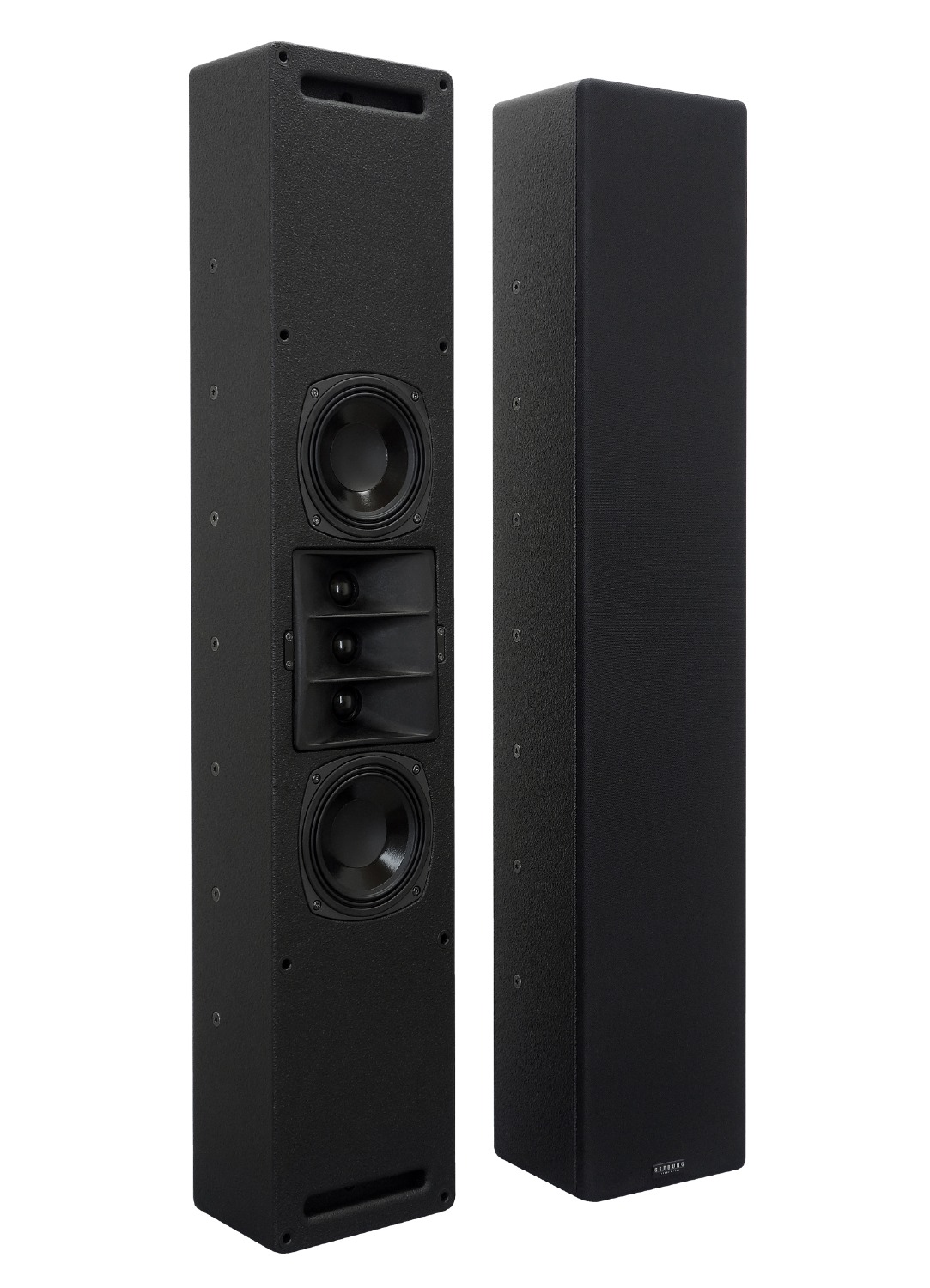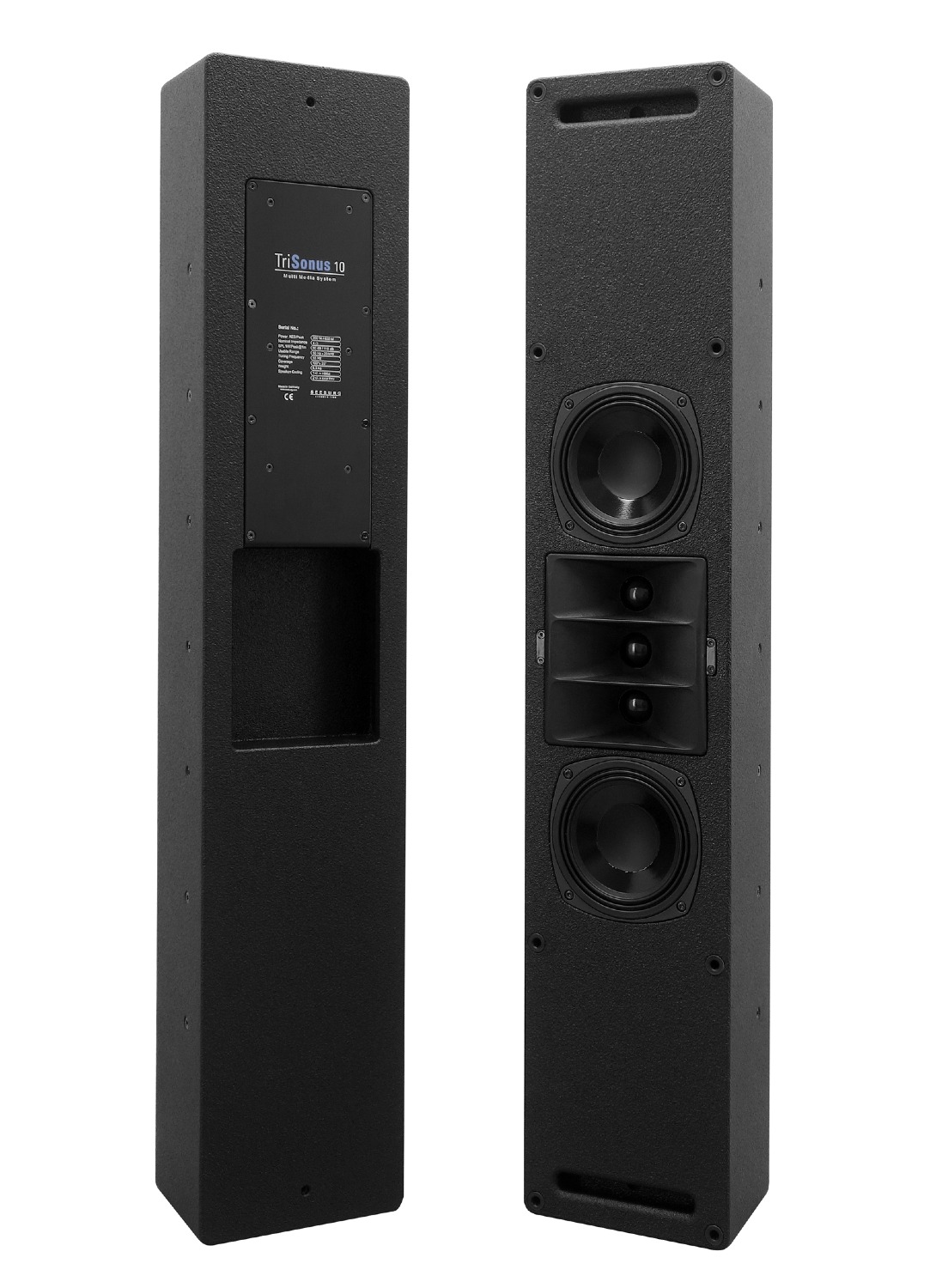 Het TriSource 10 luidsprekersysteem is speciaal ontworpen voor toepassingen in combinatie met grotere beeldschermen waar een zeer goede geluidskwaliteit en een groter bereik vereist zijn. De goede integratiemogelijkheden worden bereikt door de geringe inbouwdiepte en het neutrale uiterlijk. Er zijn op maat gemaakte baffle-afdekkingen verkrijgbaar om aan te passen aan verschillende schermformaten. De speciale opstelling van twee 5“ lange excursiechassis en drie hoornbelaste 1,1” tweeters werkt volgens het 3-bronnenprincipe. Hierdoor wordt een bijzonder gelijkmatige verticale richtingsgevoeligheid bereikt om zelfs op grotere afstanden een hoge directe geluidscomponent te realiseren.