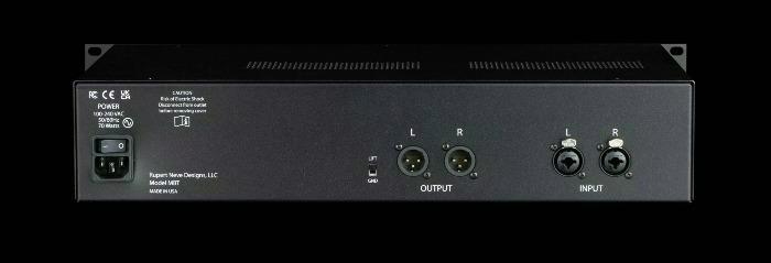 De MBT heeft gebalanceerde XLR-ingangen/-uitgangen op lijnniveau, ondersteunt tot +26,8dBu invoer en +25,5dBu uitvoer, en heeft een ground lift-schakelaar om aardlussen te bestrijden.
