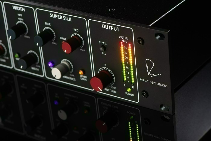 De Stereo Width-sectie vergroot de waargenomen breedte zonder het laag te beïnvloeden, met een toevoegende Width-regeling, een 50–800Hz HPF om lage tonen gecentreerd te houden, en subtiele hoge-frequentieafvlakking om scherpte te vermijden. Super Silk bevat onafhankelijke Blue- en Red-regelingen voor lage en hoge harmonischen, een Harmonics-regeling voor verzadiging en Zener Drive voor diodegebaseerde soft clipping, die agressieve oneven harmonischen introduceert nabij de headroomlimiet.