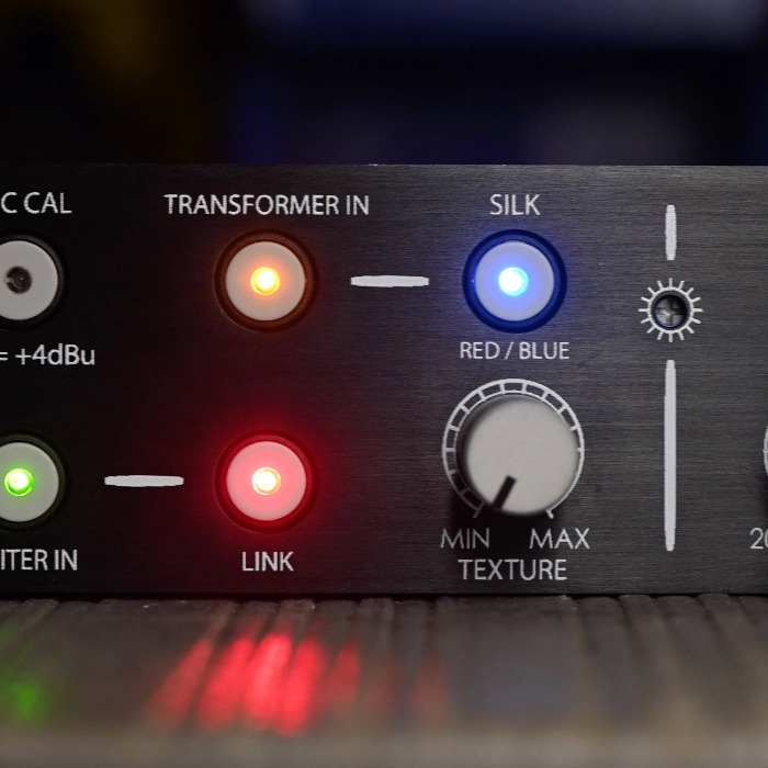 For a bolder, more powerful imprint, a custom-designed inter-stage transformer with Rupert’s acclaimed Silk circuitry can be inserted to recreate the classic tonality of his vintage designs. Uniquely, unlike our audio transformers intended for line-level output, this new transformer is designed to achieve output transformer harmonic content characteristics at a level appropriate for input to the converter itself. With the addition of variable Silk, the engineer is able to precisely dial in the desired amount of harmonic content – with the Red mode highlighting harmonics in the mid and high frequencies, and the Blue mode accentuating harmonics in the low-end. From a subtle transformer tonality without Silk, to significantly more color than vintage modules with the Silk / Texture circuit fully pushed, the selectable transformer path fills your tracks with enhanced dimensionality and power.
