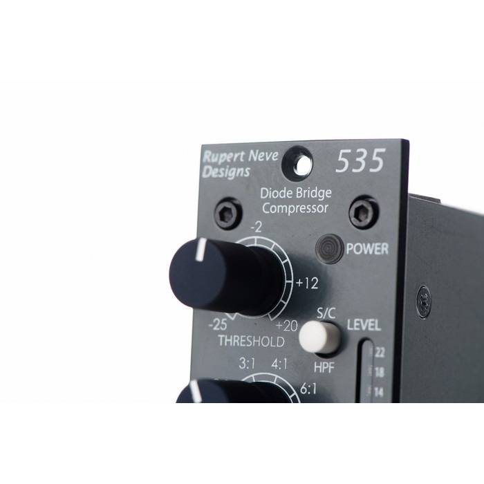 Where the VCA compressor found in the 543 and Master Buss Processor provides unmatched clarity, the weighty, harmonically rich tonality of diode bridge compression can be essential in pushing key sources like vocals, electric guitars, bass and drums to the forefront of a mix. Mr. Rupert Neve’s original diode bridge compressors like the 2254 served as an inspiration for the design of the 535. By understanding the limitations of the original 2254 topology, painstaking effort was taken to reproduce the unique tone of the 2254 while improving the noise floor, expanding inflexible time constants, adding full wave sidechain detection for improved dynamic response, widening the range of threshold and ratio controls, and raising the headroom of the diode bridge itself. Delivering the powerful sound of these classic designs with enhanced flexibility for the modern age, the 535 is a dynamic tool equipped to make a statement on virtually any track.
