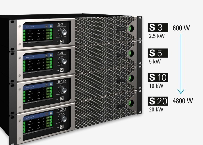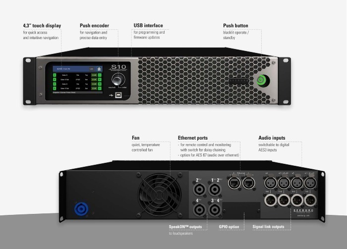 De 4-kanaals versterkte systeemcontrollers van de S-Serie combineren geavanceerde vermogenselektronica met een geavanceerde DSP, die eenvoudig bediend kan worden via het touch-display.