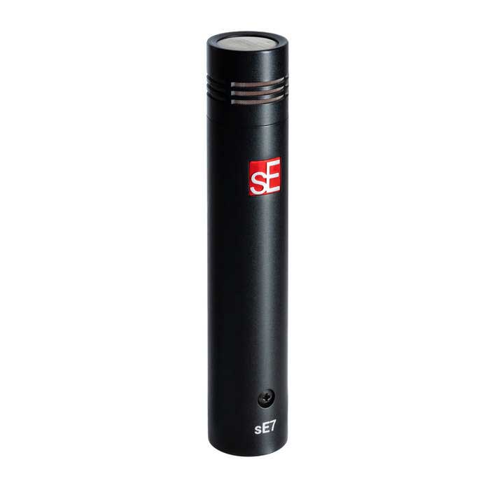 The sE7 is a high-quality back-electret small diaphragm condenser microphone intended for a wide range of studio and live sound applications, from acoustic guitars to pianos to drums and beyond. With an optimized acoustic design, discrete class-A circuitry, versatile attenuation and low-cut switches and a transformerless output, it delivers clear, natural sound quality at all frequencies for any instrument, without suffering from fizzy highs or a lack of low-frequency punch.