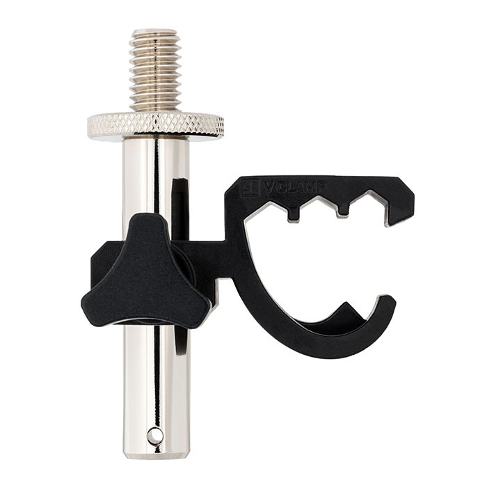 The V CLAMP is the fastest, most compact and most practical drum mic mounting system on the market, and is compatible with any popular snare or tom drum. It was designed as the perfect companion to sE’s V BEAT for snare or tom miking purposes, but it is also compatible with many other popular microphones. Its sturdy elastic clamp enables setup and tear-down within seconds, and its robust, bulletproof design is built for use on the road. The height and rotation of the connected microphone can be easily changed by loosening the V CLAMP’s knob and adjusting the position of the rod, allowing perfect positioning for any desired drum tone, or to minimize spill from nearby drums.