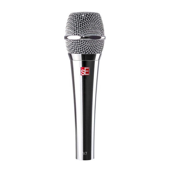 The V7 Chrome is a chrome-plated version of sE’s best-selling V7, a dynamic vocal hand-held microphone with a supercardioid polar pattern. It delivers a crisp, open sound that perfectly captures your voice and instruments in the most natural way you've ever heard on stage. The sophisticated capsule design helps isolate your voice from other instruments, ensuring vast amounts of gain before feedback, and its brand new, patented shockmount efficiently decouples the capsule from mechanical vibration, providing the lowest handling noise in its class.